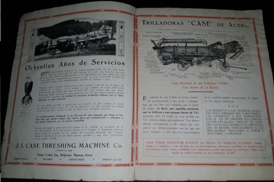 Como conté más arriba, la J.I. Case Threshing Machine Co., desembarcó con su representación oficial en Argentina en 1890. Las oficinas de la administración principal estaban en ubicadas en la esquina de Av. Paseo Colón y Av. Belgrano, lugar donde hoy existe un estacionamiento de automóviles.
