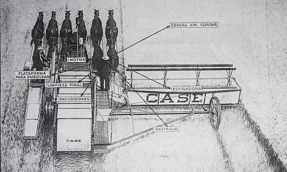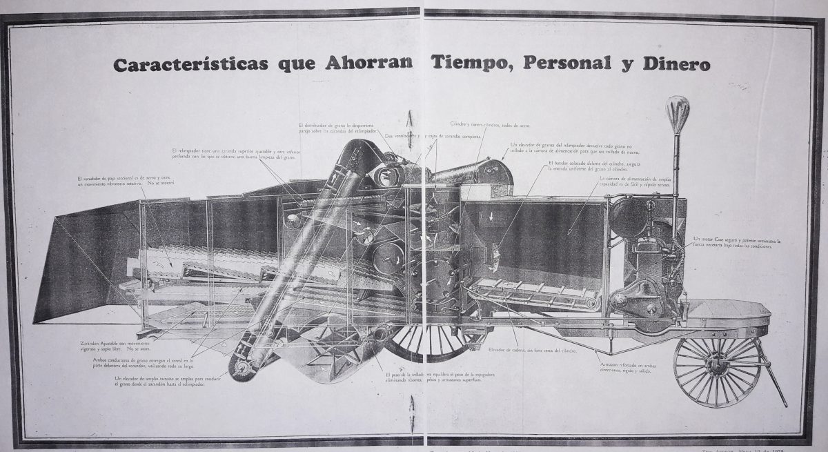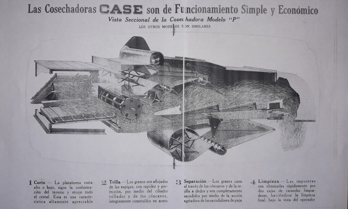 Como se lee en el texto, uno de los principales ingenieros de la empresa J. I. Case Co., ya en 1924 destacaba a la Argentina como destino de gran importancia para las máquinas combinadas de arrastre.