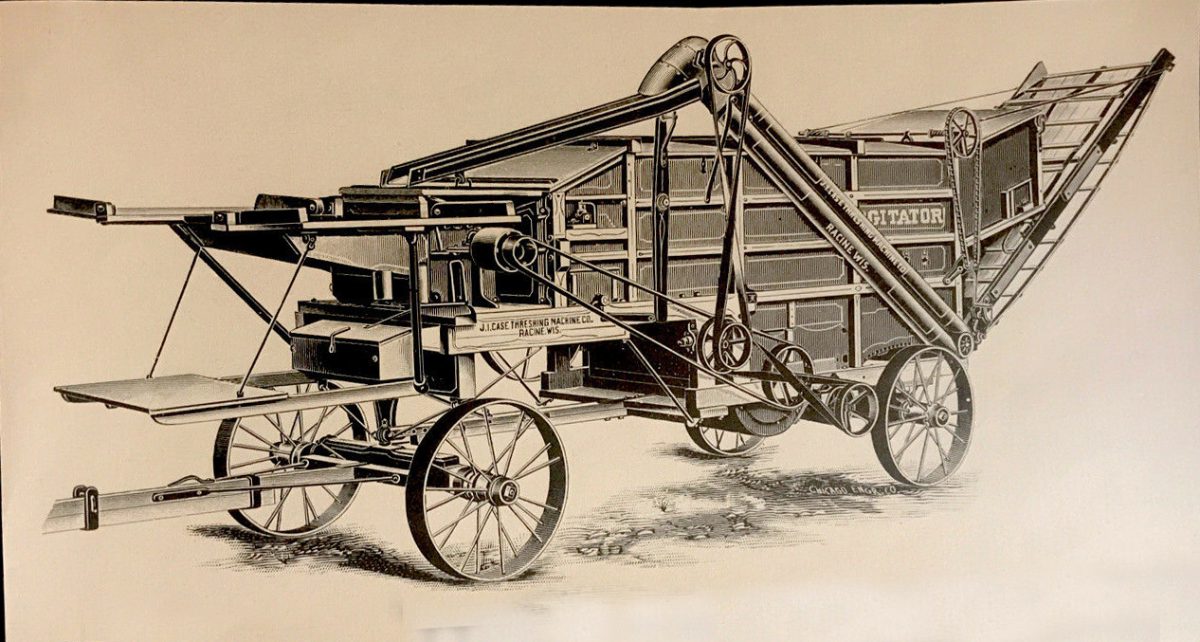 Aquí vale una breve aclaración. El fundador de la empresa CASE fue Jerome Increase Case, un hombre que desde su juventud se había dedicado al diseño, fabricación y comercialización de maquinarias agrícolas. Jerome fallece a la edad de 73 años en 1891, por lo tanto pierde la vida al momento en que su empresa, no solo era líder en la venta de motores a vapor, sino que ya había presentado la AGITATOR, la tercer trilladora estática construidas en madera.