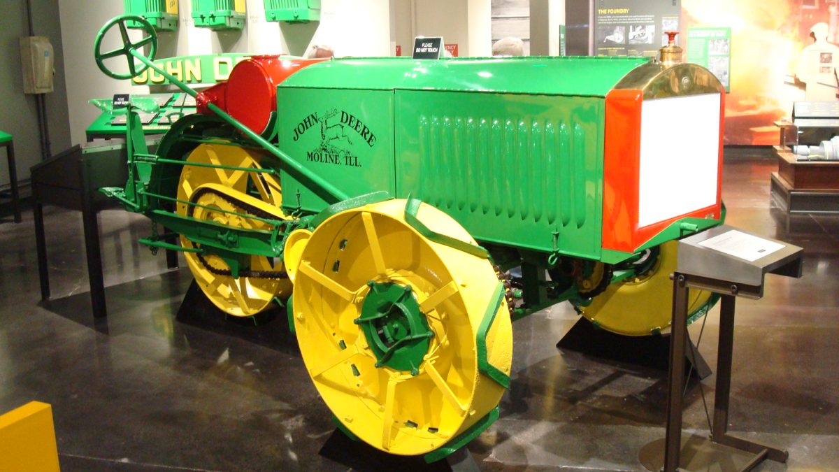 Foto del tractor desarrollado en 1912 por Charles H. Melvin para la John Deere. Este modelo era de 3 ruedas.