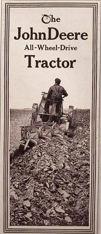 Tapa de un folleto publicitando el John Deere modelo Dein All-Wheel-Drive, es decir tracción integral.