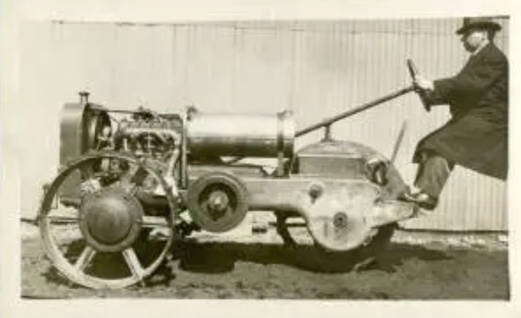 Otra foto del tractor experimental desarrollado en 1912 por Charles Melvin para la John Deere.