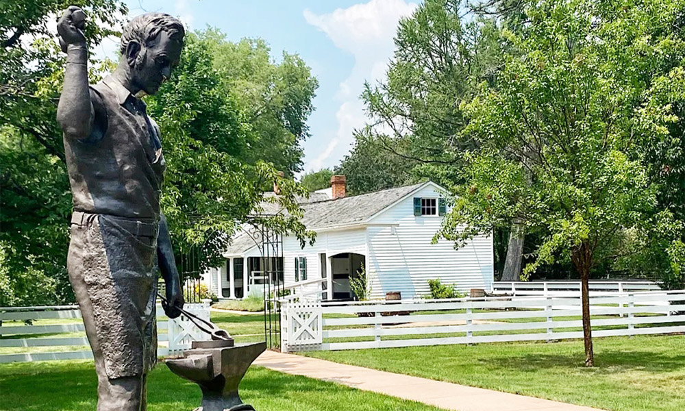Monumento al herrero John Deere ubicado en el patio de la casa que de Grand Detour, lugar hoy transformado en Museo.