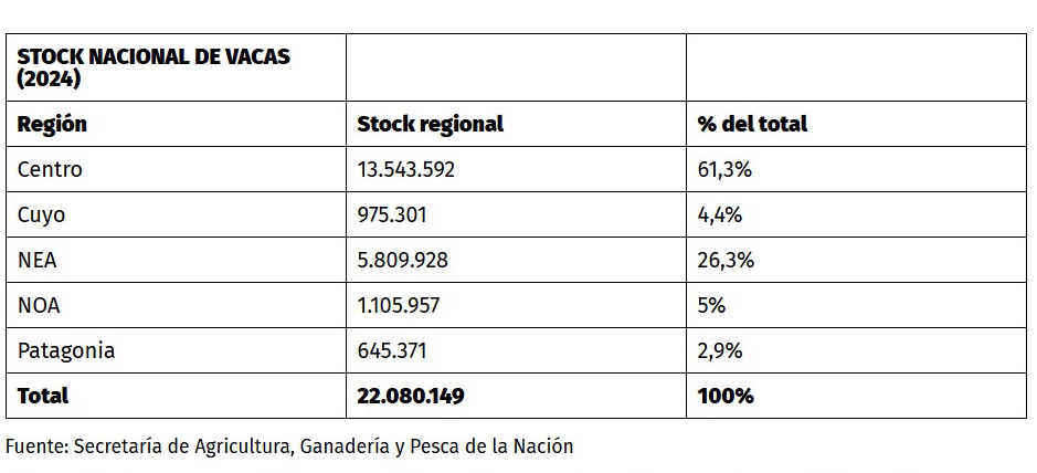 El stock nacional de vacas en los últimos 18 años se ubicó entre 19 y 23 millones de cabezas; es decir, se mantuvo bastante constante. La Argentina debería tener arriba de 40 millones de vacas. En la Patagonia, entre estos mismos años, el stock regional de vacas creció 13,63% (de 567.950 a 645.371 cabezas).