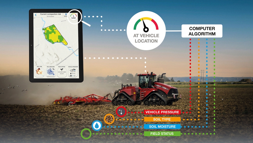 -Compaction Prevention System (CPS): el sistema de prevención de compactación del suelo proporciona al usuario un servicio que muestra, por anticipado y en forma de mapa, el riesgo de compactación actual de un campo y, por lo tanto, su transitabilidad. Además, la simulación también incluye el denominado ‘status del campo’, que comprende variables importantes de la condición del suelo, como, por ejemplo, la variante de labranza del suelo, los cultivos y el estado de la vegetación.