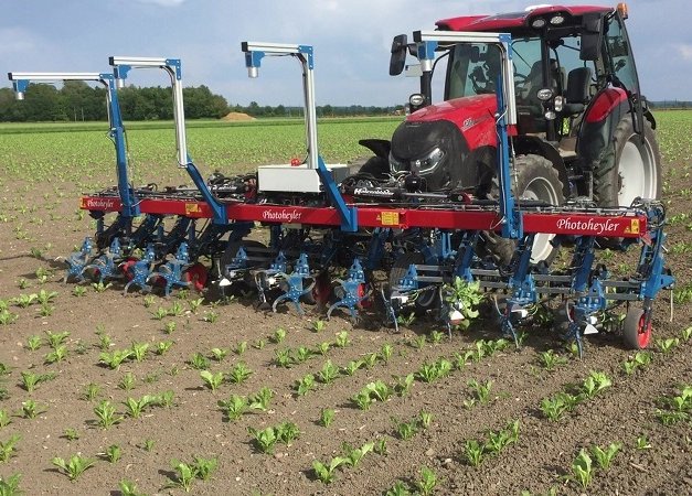 -Photoheyler-PLANUNGSBÜRO HEINRIC: nuevo concepto rotor que permite alcanzar rendimientos de superficie de más de 1 ha/h. La guía de hileras Photoheyler detecta de forma fiable las hileras de cultivo mediante cámaras. Además, ruedas direccionales de la máquina pueden guiarse con la ayuda de cilindros hidráulicos, y se dirigen de forma sincronizada con las del tractor. Esto significa que la azada mecánica o carpidora es guiada a lo largo de las hileras con la máxima precisión. De esta manera, desaparece la dificultad existente para mantener la máquina y el tractor bajo control al mismo tiempo.