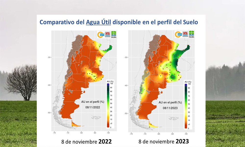 La imagen entre un año y otro coincide con el momento de siembra de la soja, que está en marcha. Sobre esto, Pablo Mercuri, director del Centro de Recursos Naturales del INTA, dijo: «Si bien no está completo el almacenaje o recuperado los suelos de la mayoría de los territorios de la prolongada sequía, representa una marcada mejoría comparado con el año previo».