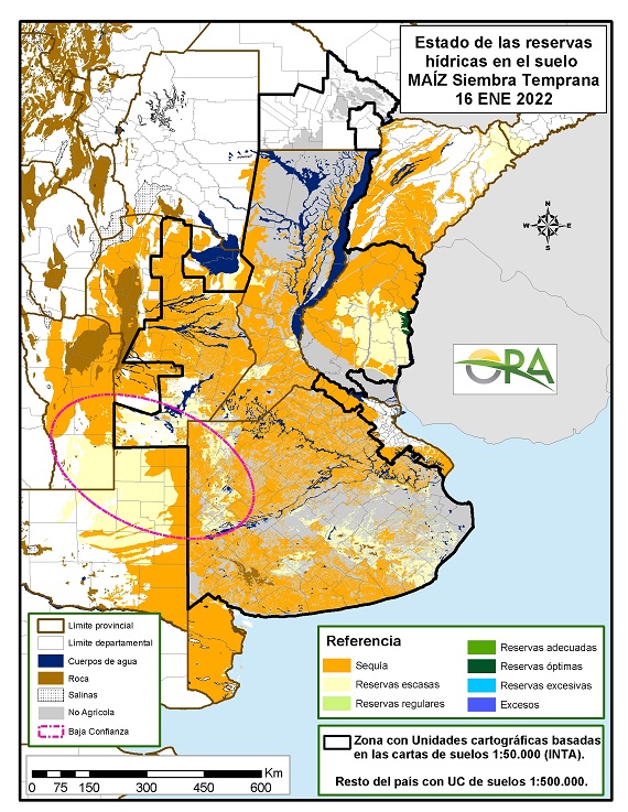En ese contexto, la ORA advirtió sobre las reservas de humedad en los suelos para los maíces tempranos, que siguen bajo una condición crítica.