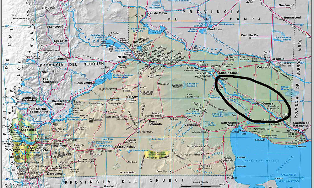 Las seis explotaciones agrícolas agrupadas en el proyecto incluyen cinco establecidas a lo largo de las márgenes del río Negro y una cerca de Río Colorado.