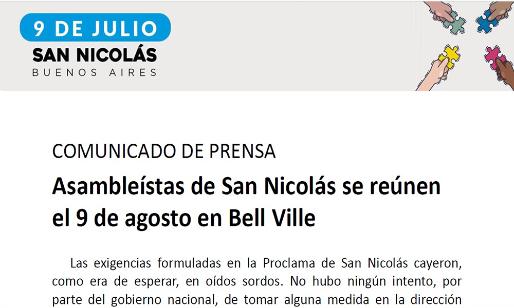 “Las exigencias formuladas en la Proclama de San Nicolás cayeron, como era de esperar, en oídos sordos. No hubo ningún intento, por parte del Gobierno Nacional, de tomar alguna medida en la dirección solicitada”, expresaron en un comunicado. El #9JSanNicolás había sido un acto de gran convocatoria que los productores realizaron el 9 de julio a la vera de la ruta 9, en el que manifestaron un profundo mensaje de rechazo a las políticas oficiales para el sector agropecuario.