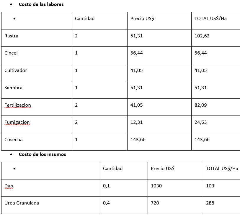 *COSTO TOTAL (US$/Ha): 1.492,72
