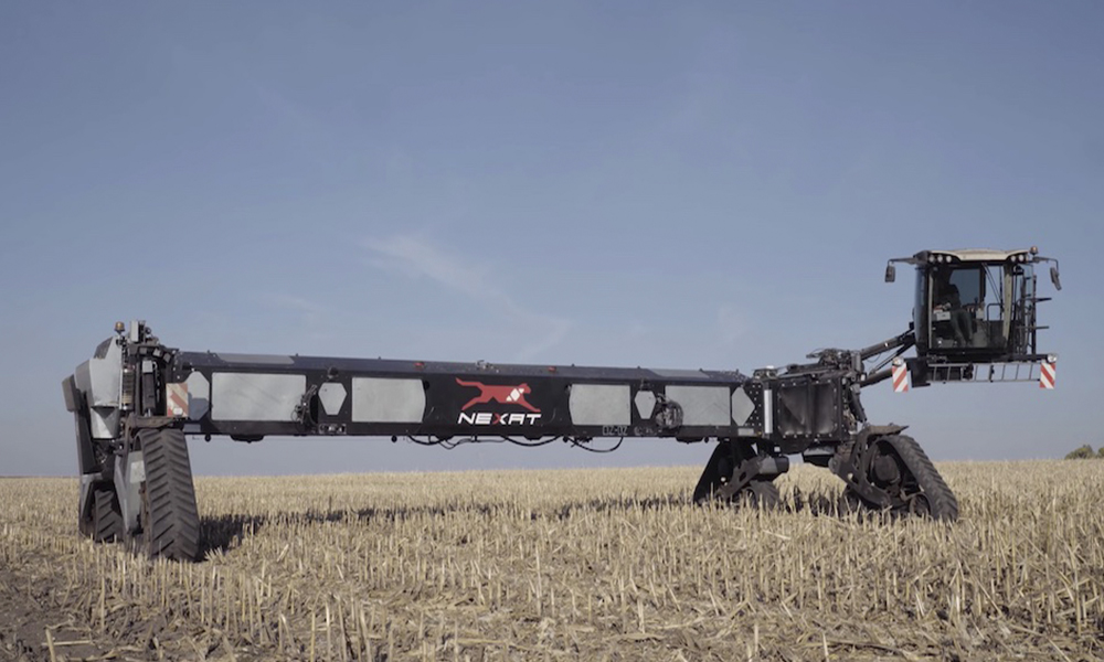 El NEXAT, que está impulsado eléctricamente, es un vehículo transportador intercambiable de gran envergadura. Según describen, este «tractor de sistema todo en uno» maneja todos los pasos la labor agrícola: siembra, protección de cultivos, fertilización y cosecha.