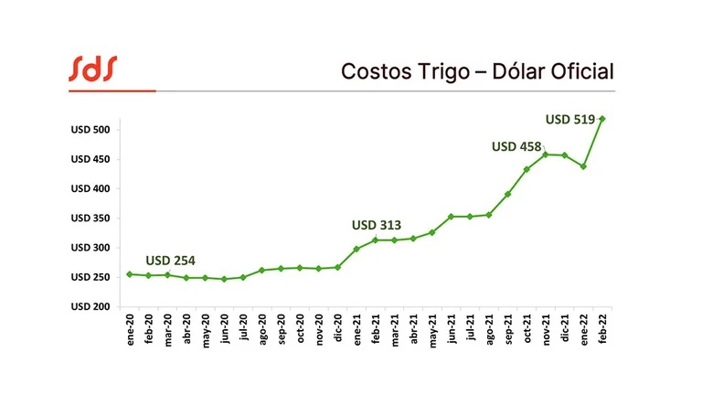 La nota firmada por Di Stéfano comienza diciendo que “La dinámica de los negocios agropecuarios hace que muchas veces lo que veas no es la realidad. En el mercado mucho se habla de la suba en el precio del trigo, en los últimos 12 meses aumento el 29,1% en dólares, mientras que los costos directos para poder sembrarlo aumentaron el 65,8%. Mientras el secretario de Comercio Interior, Roberto Feletti, habla de la abundancia del sector agropecuario, tendría que saber que para la campaña 2022 del trigo los resultados empresariales serán negativos, pensando en un lote en que estimamos un rinde de 4 toneladas por hectárea, y un alquiler de 85 quintales de soja. El Gobierno, sin estudio alguno, se queja de la riqueza generada por el campo, pero omite estudiar los costos de sembrar trigo y cuál podría ser su resultado”.