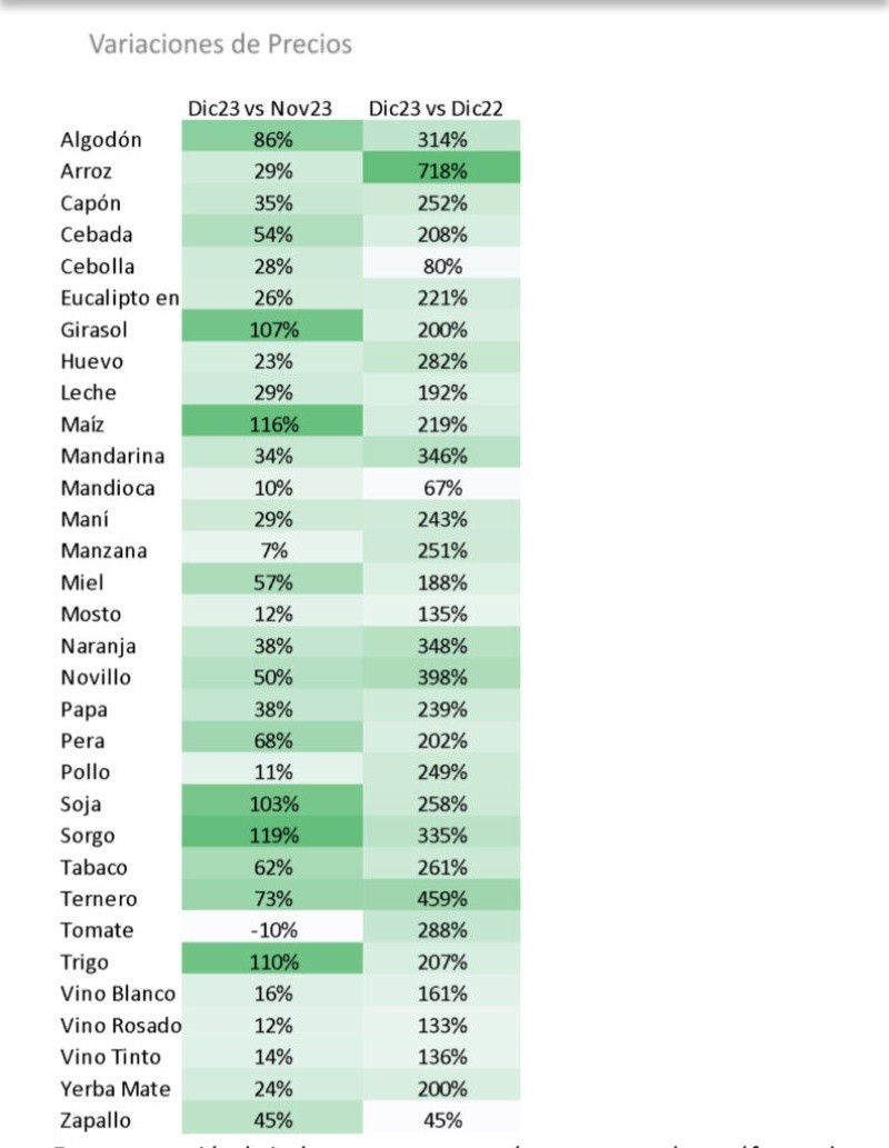 La contracara de los precios, los costos promedios de las 19 actividades crecieron interanualmente +250% en diciembre de 2023, con un máximo de +334% en el caso de arroz con pozos de gasoil (zona Entre Ríos).