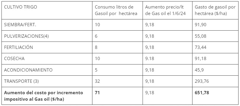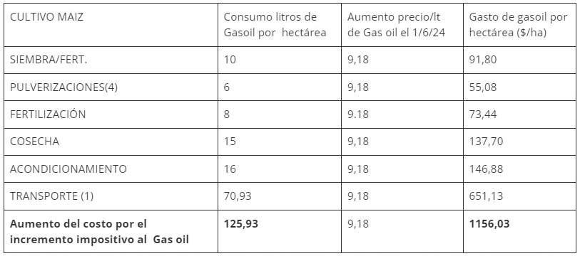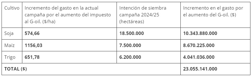 Aumento del gasto por hectárea por el incremento del impuesto al Gasoil