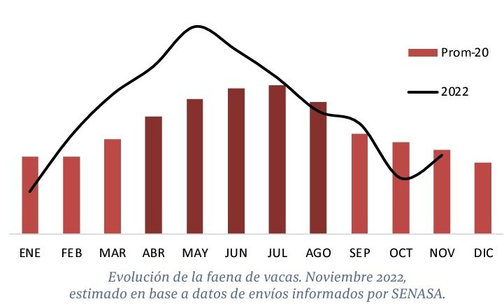 En consecuencia, sigue saliendo mucha hacienda de los campos. Durante noviembre, 1.192.410 animales fueron enviados a faena, esto es un 6% más que lo remitido el mes previo y un 7% más que lo enviado en noviembre del año pasado.