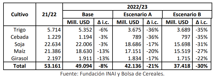 Esto implicaría una caída de US$ 6.958 millones respecto a lo esperado al principio de la campaña y de US$ 11.025 millones en comparación con el ciclo 2021/22.