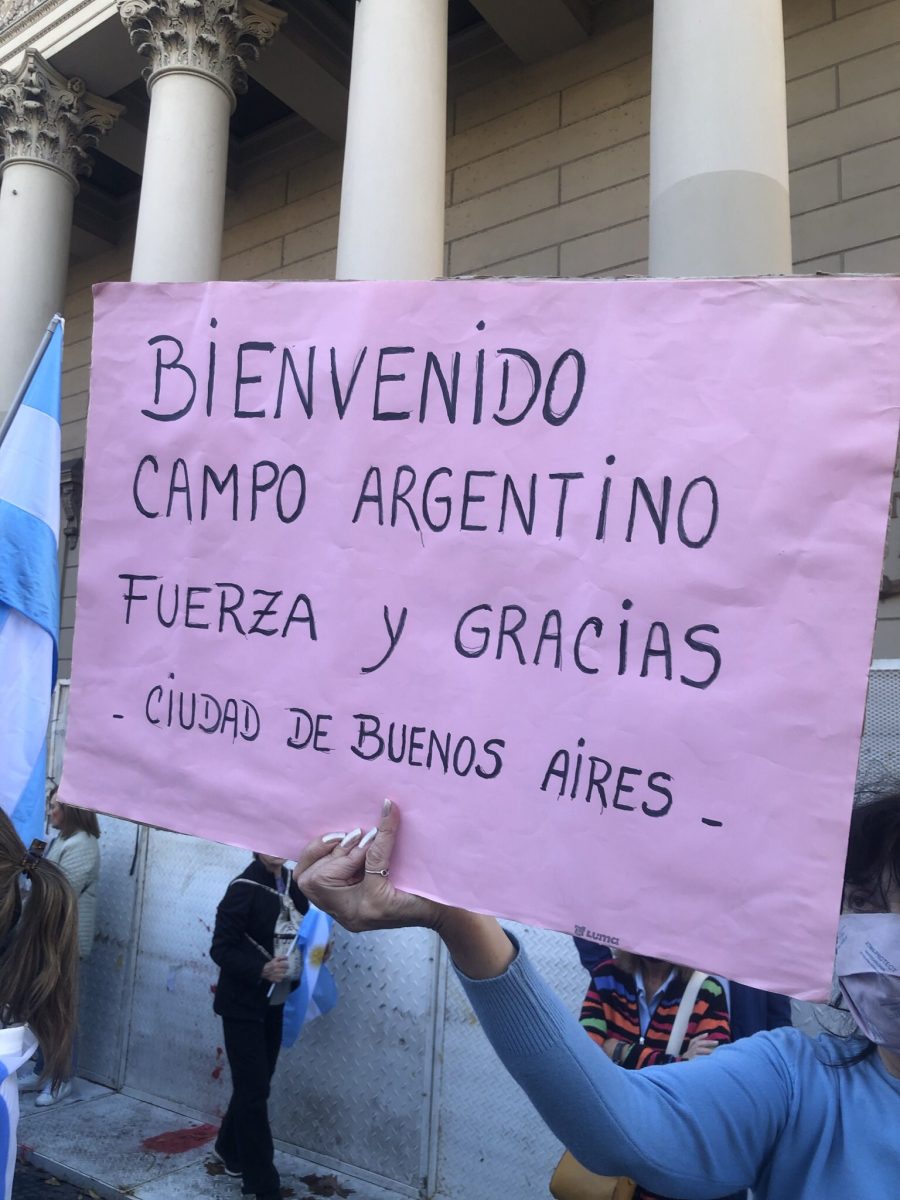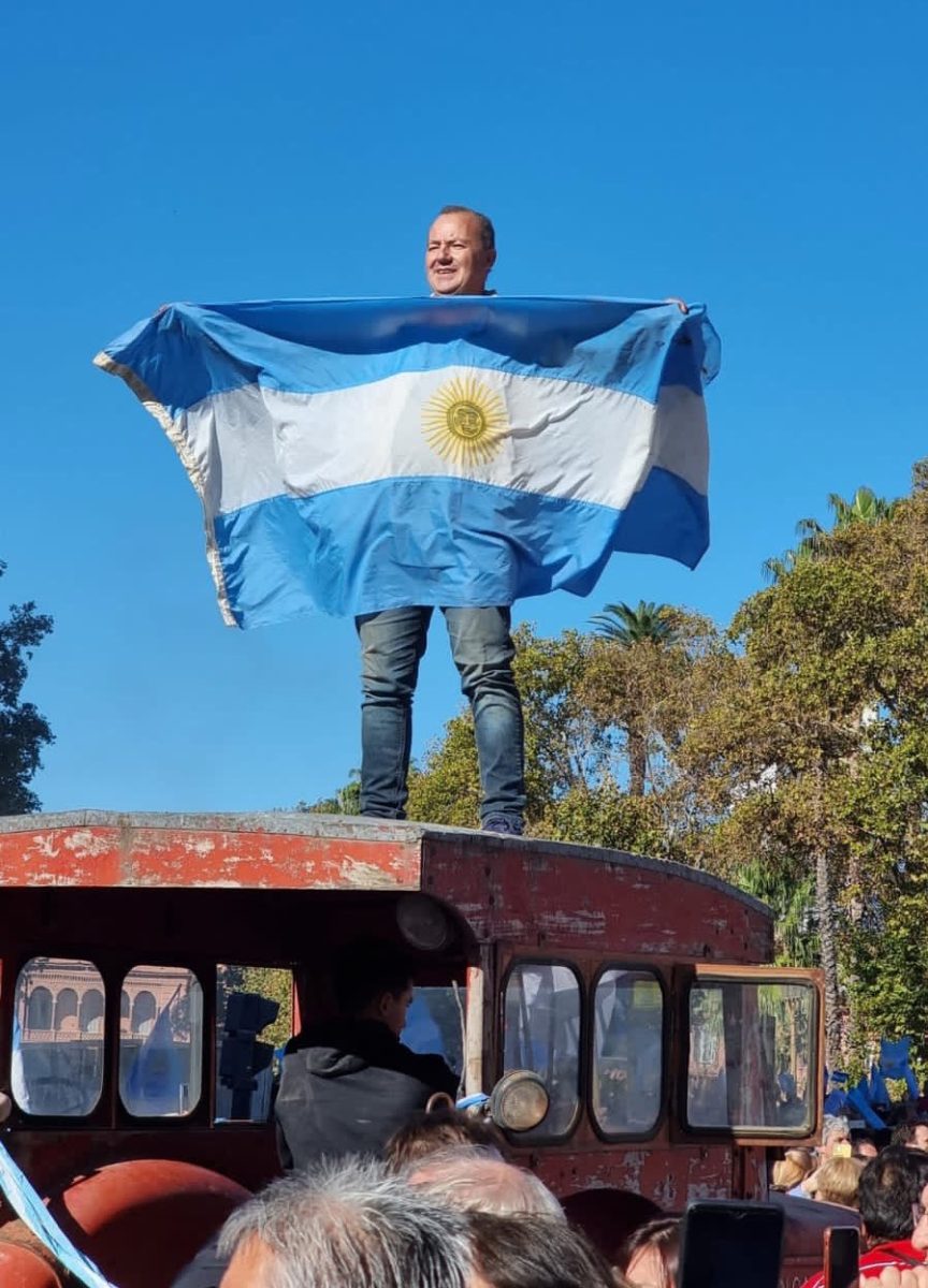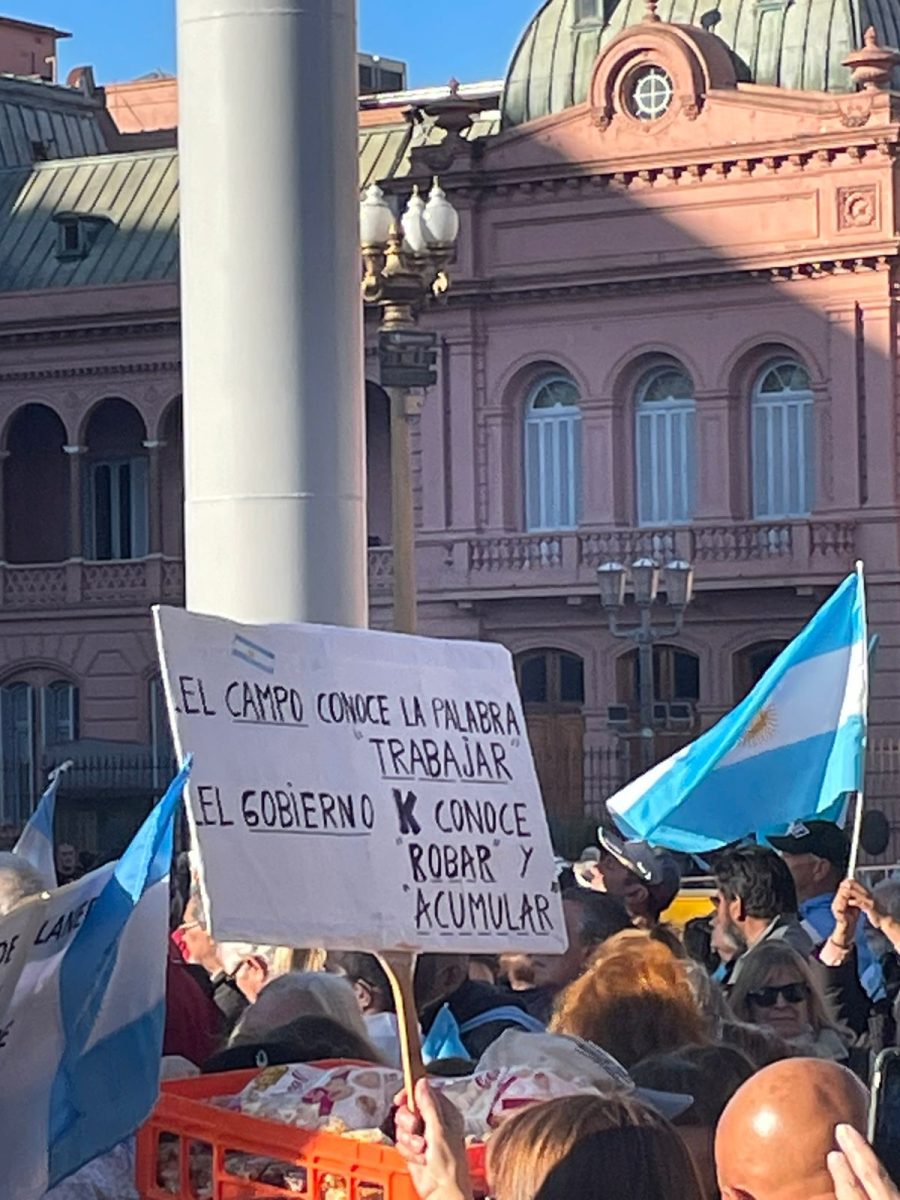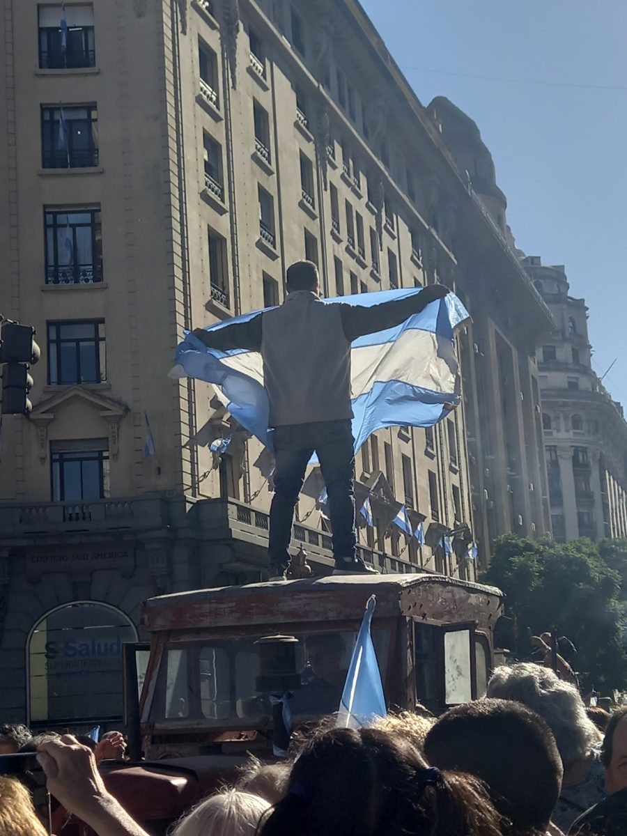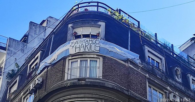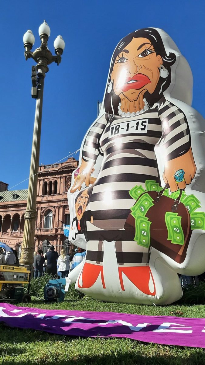 Esta bandera fue colocada por su vecina, el sábado 23, arriba del departamento de la vicepresidenta Cristina Fernández ubicado en el barrio de Palermo.
