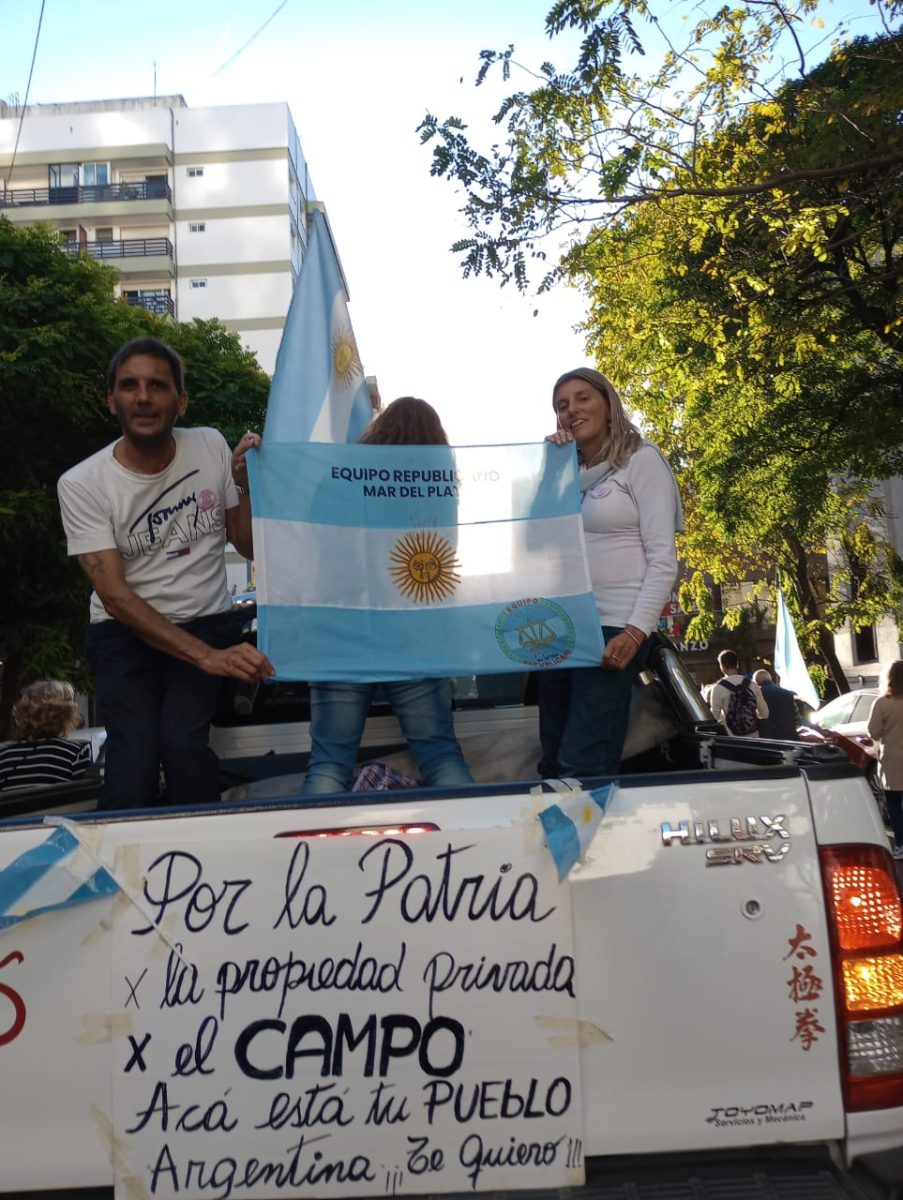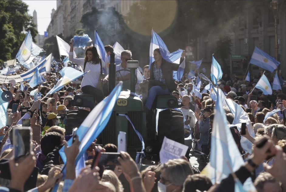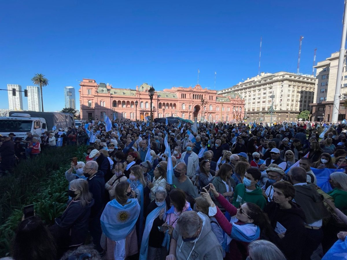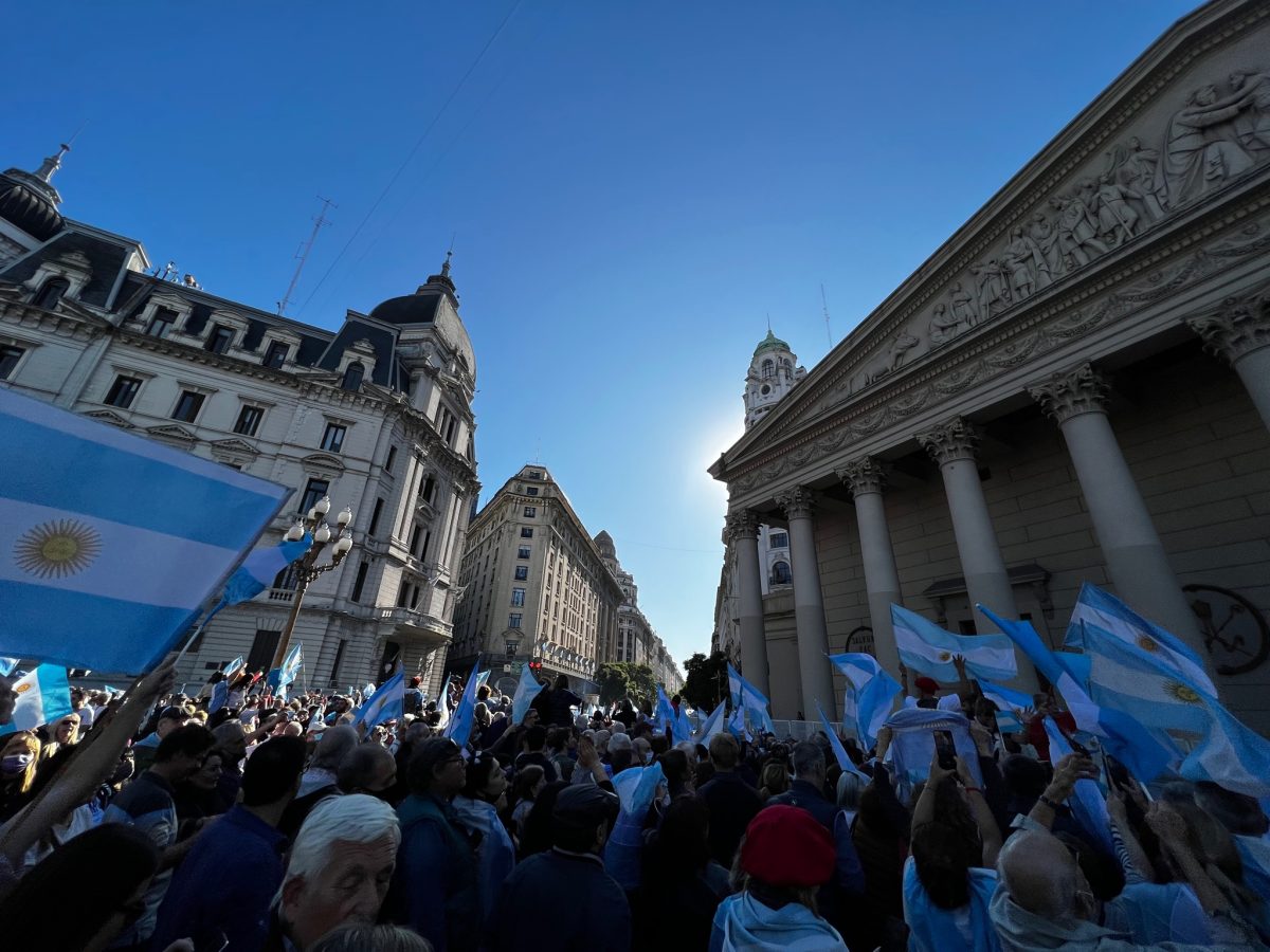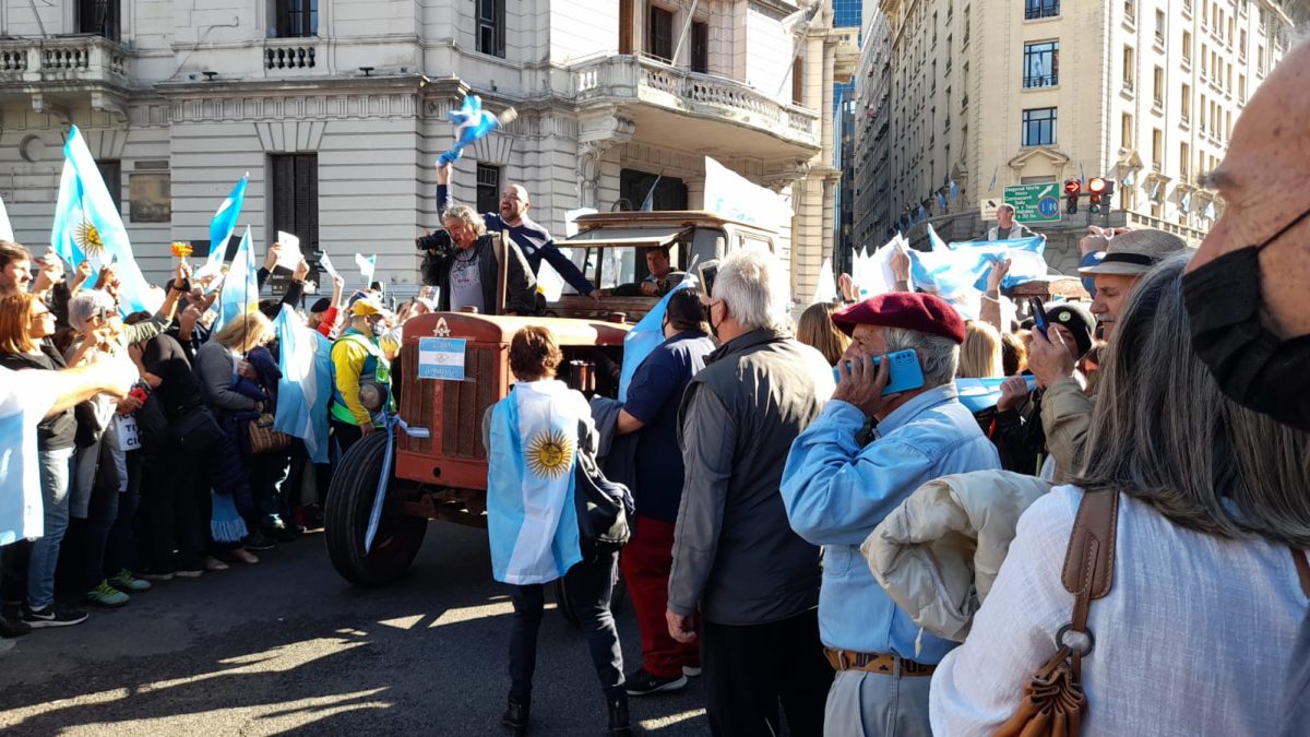 Esta bandera fue colocada por su vecina, el sábado 23, arriba del departamento de la vicepresidenta Cristina Fernández ubicado en el barrio de Palermo.
