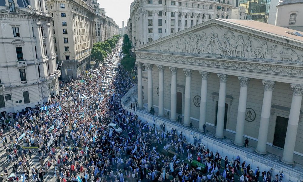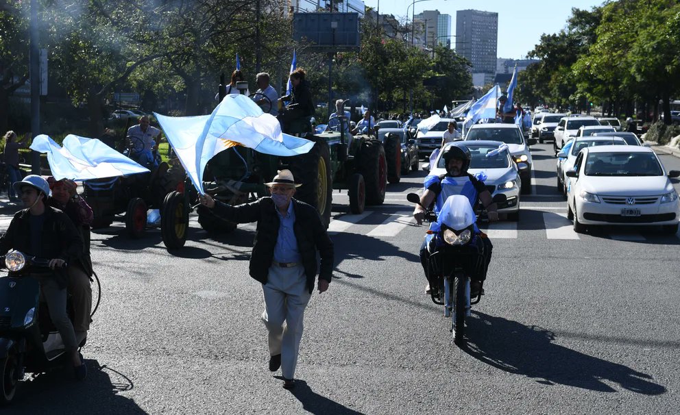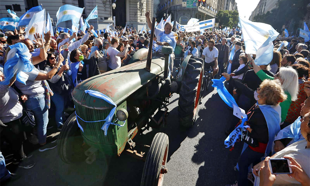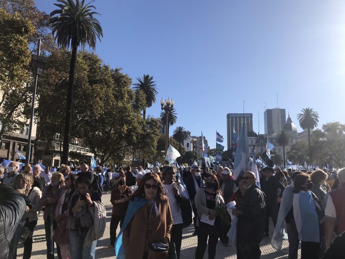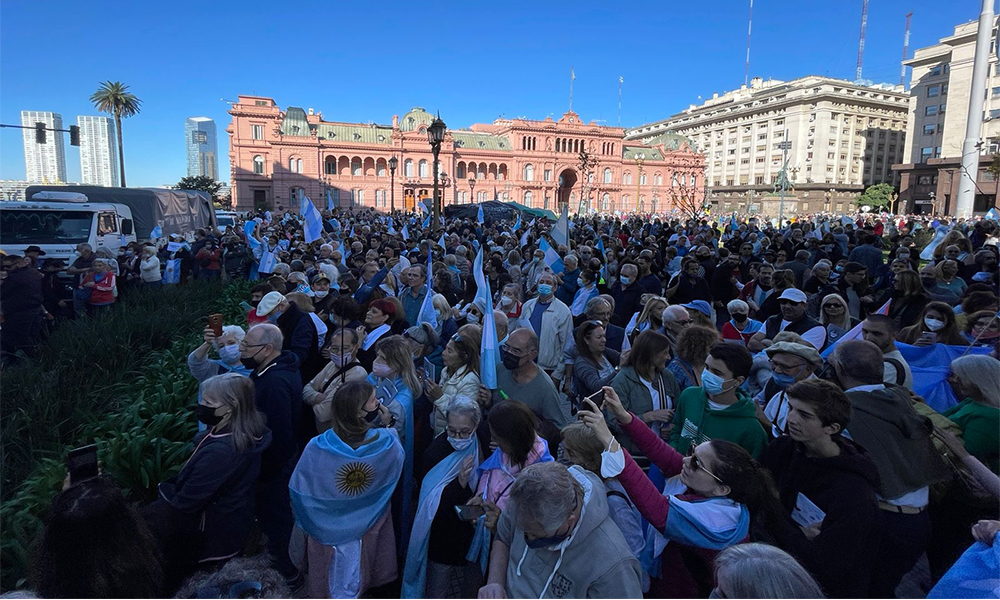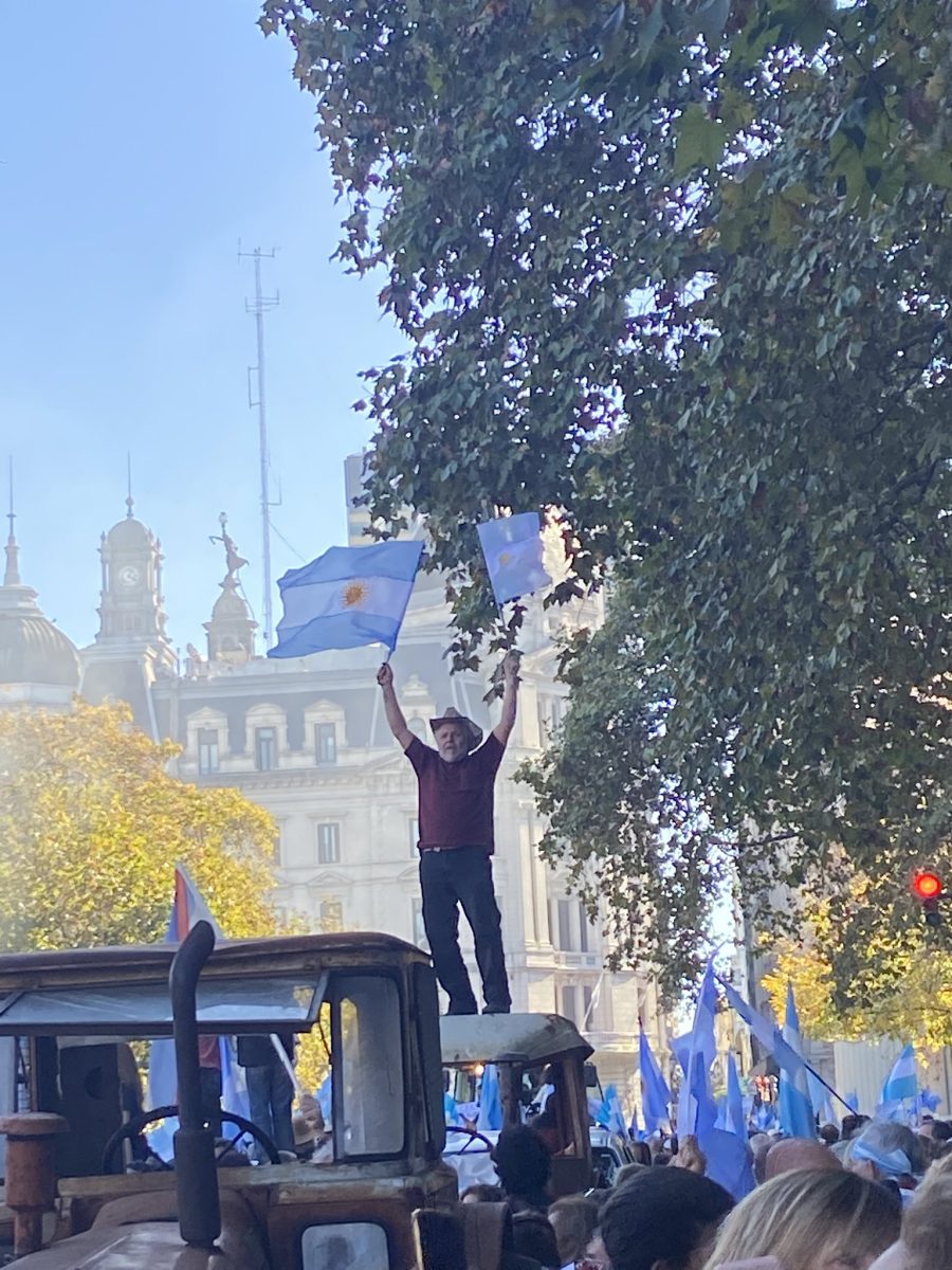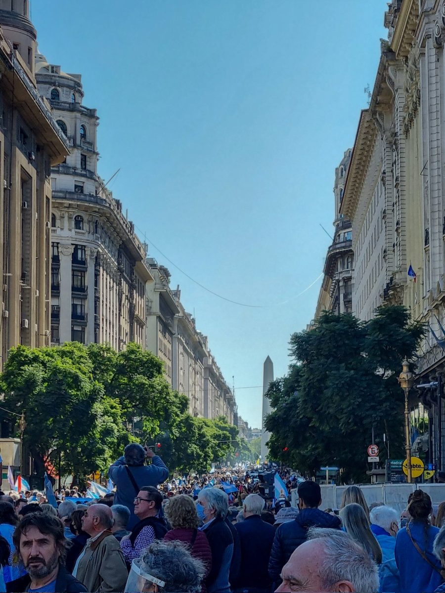 Esta bandera fue colocada por su vecina, el sábado 23, arriba del departamento de la vicepresidenta Cristina Fernández ubicado en el barrio de Palermo.