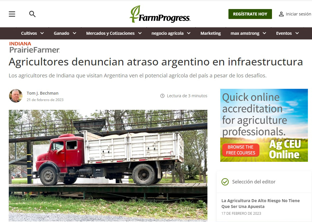 Según lo publicado en FarmProgress, un medio especializado de esa ciudad, representantes del Indiana Soybean Alliance, llegaron a la Argentina a comprobar de primera mano las características del cultivo de soja y maíz. Y lo que vieron fue abundancia de tierra y condiciones muy favorables. Pero notaron, al mismo tiempo, un déficit importante en infraestructura.