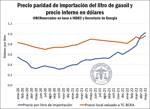 Consecuentemente, existe un desincentivo económico a importar gasoil y venderlo en el mercado interno en vista de la dinámica alcista de los precios internacionales, no haciéndolo viable económicamente.