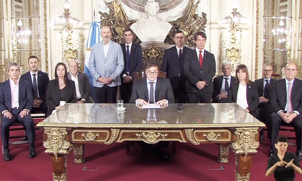 Milei, en su presentación explicó “Que la situación exige la adopción de medidas urgentes, que no admiten dilación alguna, con el objetivo de romper ese círculo vicioso de empobrecimiento generalizado y crisis recurrentes”.