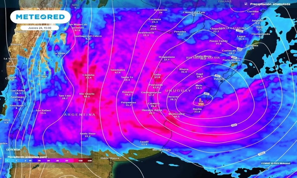 Según destaca la web meteorológica METEORED, entre el martes y miércoles habrá lluvias de 70 a 120 mm en Argentina.