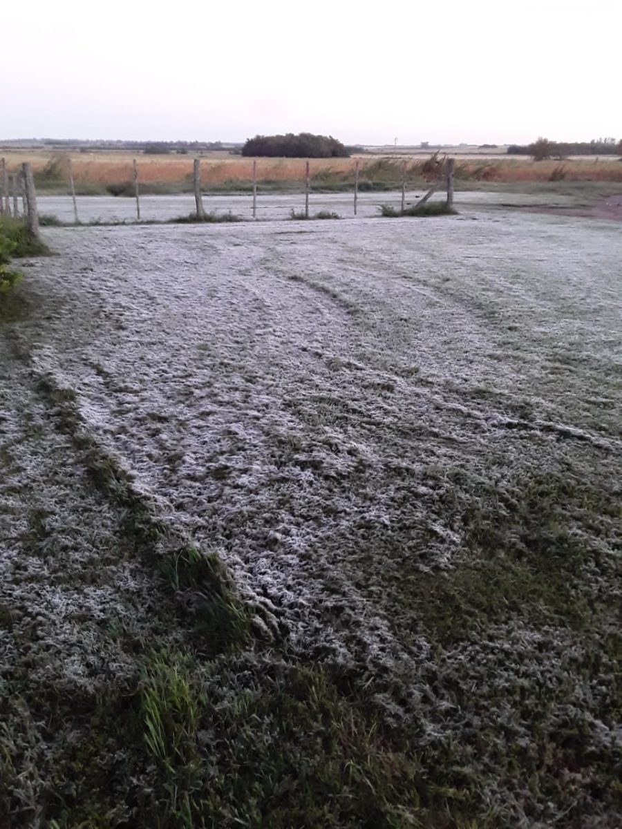 Debido a un ingreso de un frente frío, en una amplia zona productiva, se registraron temperaturas muy bajas que trajeron la primera helada en momentos donde aún hay cultivos sensibles a esta.