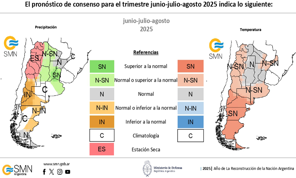 Según el SMN, en el invierno se prevé mayor probabilidad de ocurrencia de precipitación superior a la normal hacia el sur del Litoral; normal o superior a la normal en el este de Salta, centro-oeste de Formosa y Chaco, Santiago del Estero, oeste de Santa Fe, Córdoba, este de San Luis y este de Buenos Aires.