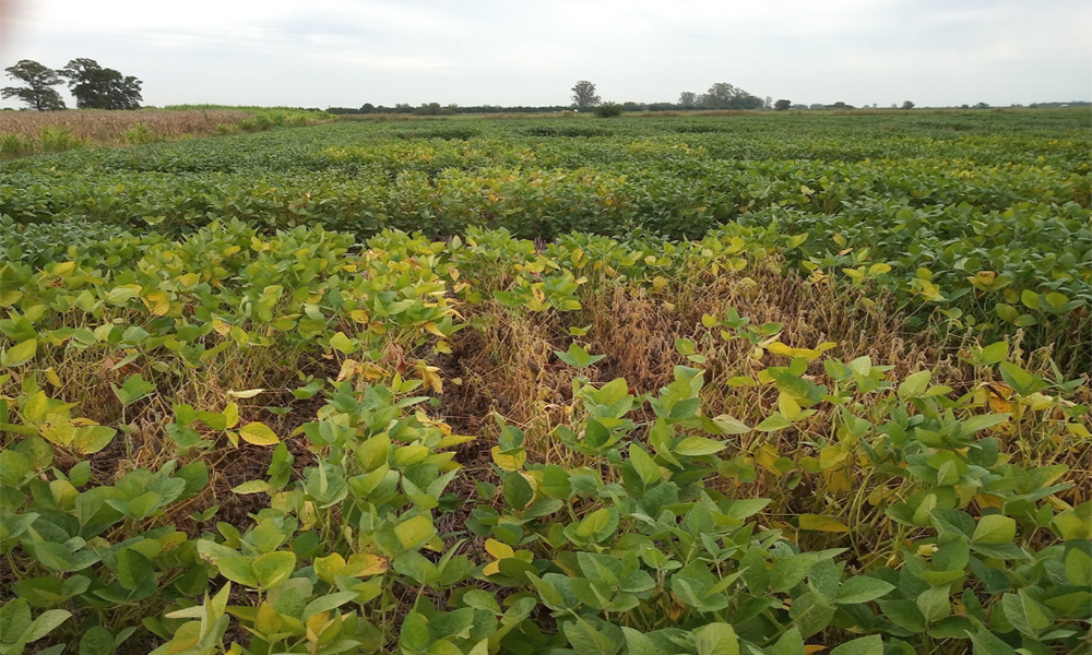 En medio de una campaña agrícola marcada por fuertes sequías, debido al fenómeno meteorológico de la “Niña”, Palacio comentó que en los estadíos iniciales del cultivo se observó muerte de plantas aisladas con síntomas de Fusarium en implantación -Damping off-, con plántulas que si bien ya habían cobrado desarrollo, ante el estrés generado por este complejo de hongos del suelo terminaron muriendo. También , en zonas puntuales de bajos, se registró muerte por Phytophthora, sin embargo dadas las condiciones de sequía los síntomas dejaron de manifestarse.