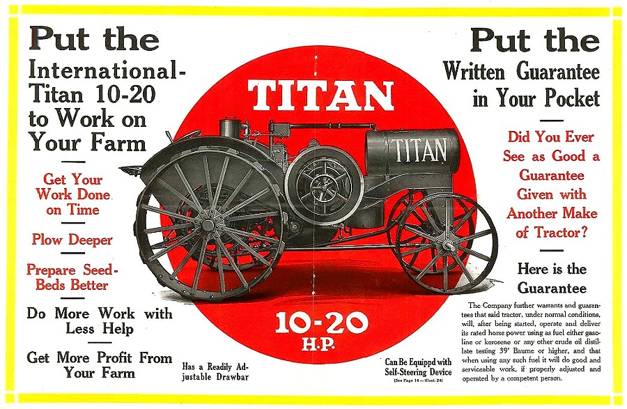 Por aquellos años fue precisamente el modelo Titán 10-20 quien se convirtió en una de las principales armas de la International Harvester Company en lo que se llamó la «guerras de los tractores».