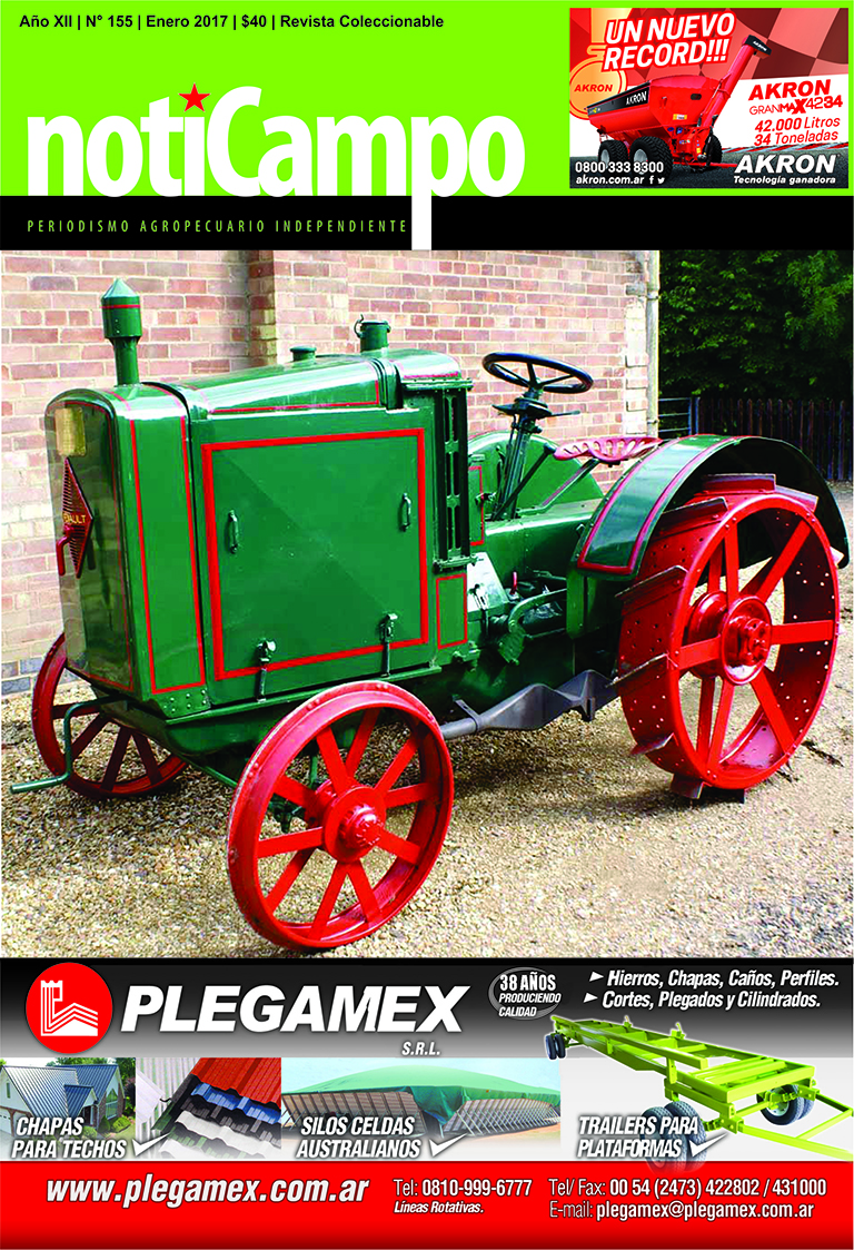 Tapa de la edición Enero 2017 de la Revista Noticampo. En este caso la tapa es una foto del tractor francés Renault modelo PE.