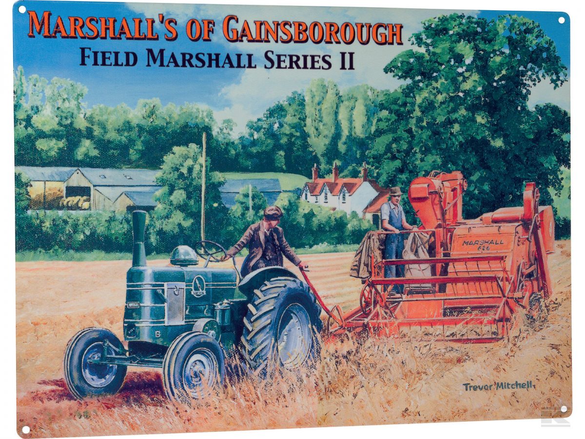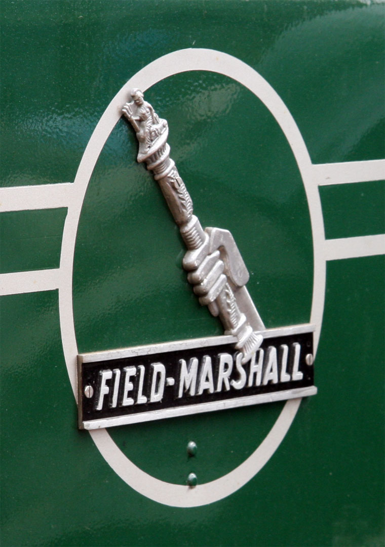 La Segunda Guerra Mundial fue un antes y un después en la empresa Marshall, pues estuvo por completo dedicada a la fabricación de elementos bélicos para la guerra. Cuando en 1945 finalizó la SGM, la empresa regresó a la fabricación de tractores y haciendo un juego con las palabras bautizó a su primer modelo Field Marshall (en castellano Mariscal de Campo) y les pone, sobre el costado izquierdo, una insignia muy particular: una mano sosteniendo un cetro que representa esa alta dignidad militar.