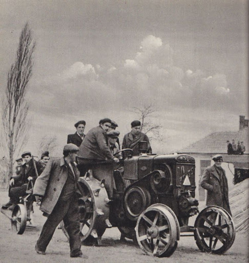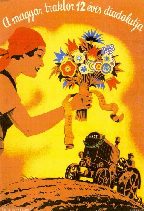 Afiche de 1937 en donde indica: El tractor húngaro, 12 años vencedor.