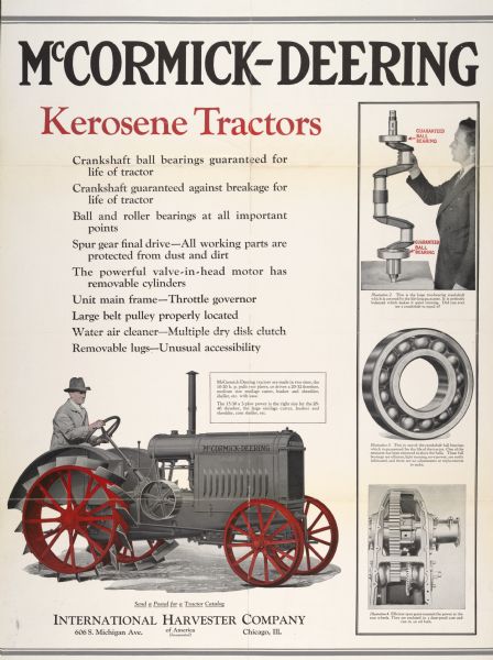 Según un catálogo oficial, “Los tractores McCormick-Deering están equipados con una válvula vertical de 4 cilindros en los motores de culata. Estos motores funcionan de manera económica y satisfactoria con querosene y otros combustibles de bajo precio».