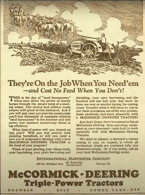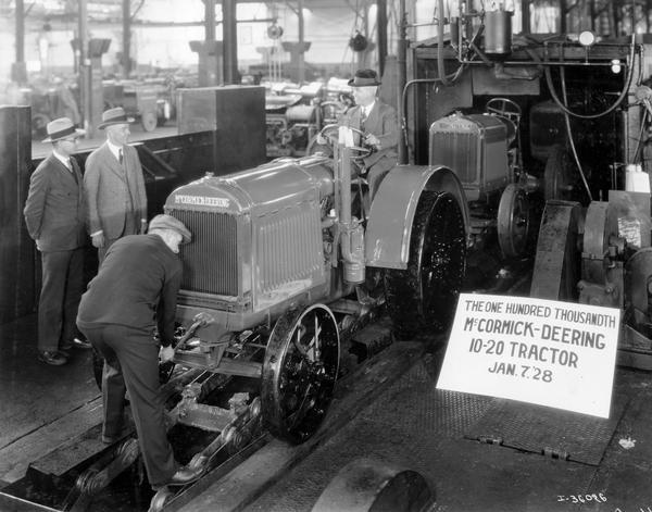 El 7 de enero de 1928 alas 10,30 am, salió de la línea de montaje de la la fábrica International Harvester Tractor Works el tractor McCormick-Deering numero 100 mil.
