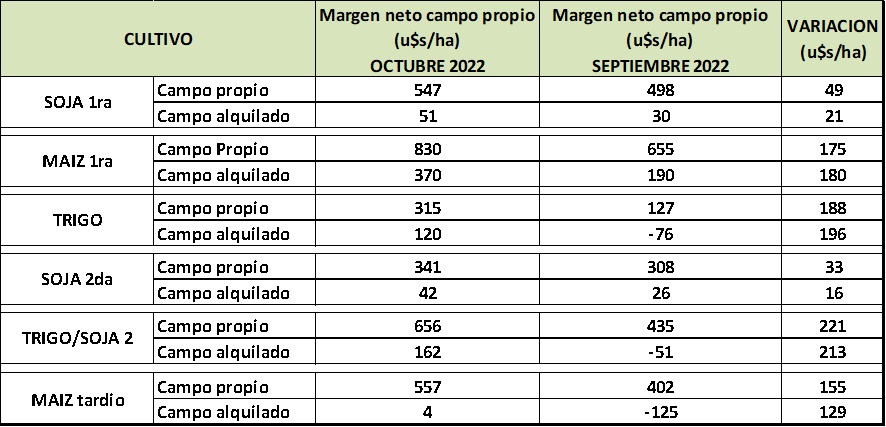 Márgenes de Octubre vs. Septiembre: ¿qué cultivo lidera el ranking?