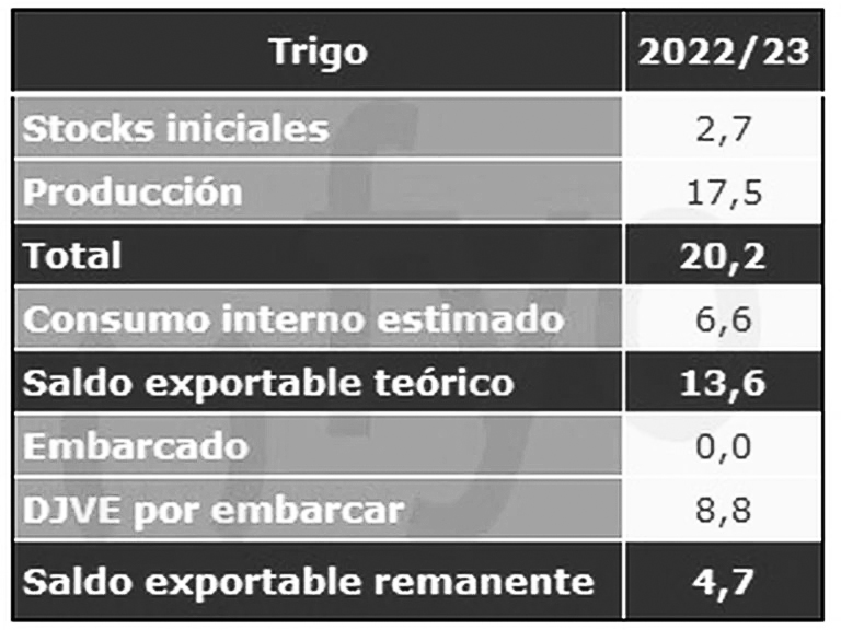 Sin embargo, a medida que fue avanzando la ventana de siembra y las lluvias no llegaron, la Bolsa de Cereales recortó la estimación de intención de área de siembra en 6,2 millones de hectáreas, y se advirtió que el recorte a la baja de podría profundizar en las próximas semanas por la ausencia de lluvias. Frente a este panorama, Jolly dijo que tomando el peor rendimiento de trigo en los últimos 5 años, de 28 quintales por hectárea, la producción alcanzaría los 17,5 millones de toneladas, y serían unas 3 millones de toneladas menos que lo proyectado en el comienzo de la campaña.