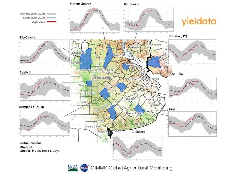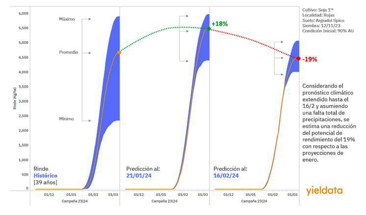 En este distrito bonaerense, y a pesar de las expectativas iniciales, el pronóstico indicó una disminución del potencial de rendimiento del 19% debido a la falta de lluvias proyectadas hasta mediados de febrero.
