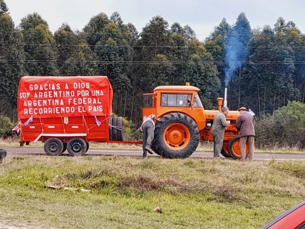 Un ex empleado de un banco, pero de sentimientos camperos, recorre la Argentina con un tractor Somecca del año 1966 para «terminar con la grieta». Al tractor le adaptó un carro con una leyenda que describe parte de su objetivo.